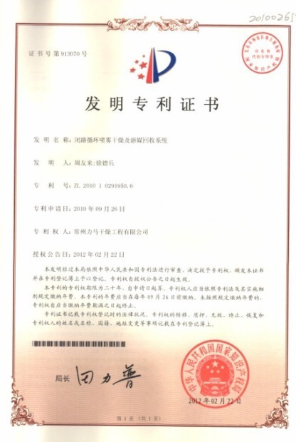 閉路循環(huán)噴霧干燥及溶媒回收系統(tǒng)發(fā)明專利
