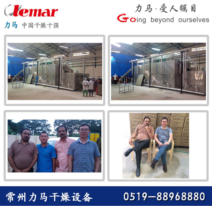 2015年9月30號(hào),從印度傳來(lái)了喜訊,用于蔬菜干燥的三層帶式干燥機(jī)順利調(diào)試成功。